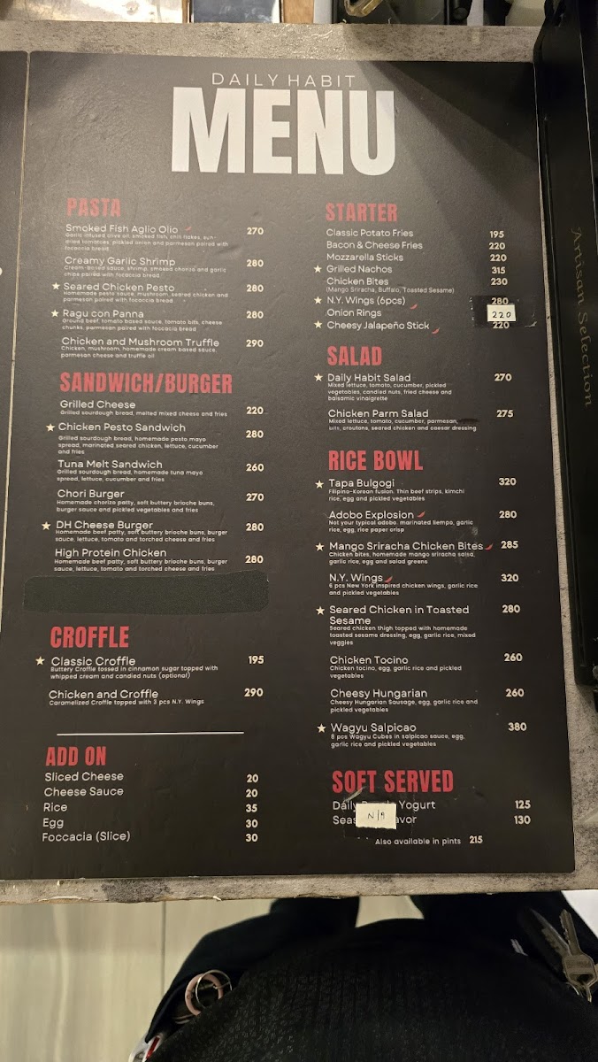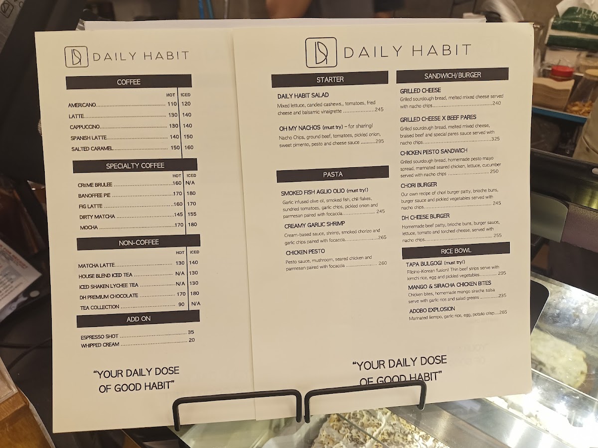 Welcome to Daily Habit Cafe - Maginhawa, a cozy haven in Quezon City where flavor meets comfort. Stepping into this cafe, you’ll discover a thoughtfully curated menu designed to delight every palate. Start your culinary journey with their Daily Habit Salad, a vibrant mix of fresh produce and mozzarella sticks, or indulge in the spicy Jalapeño Cheese Roll. The appetite-whetting N.Y Wings offer a bold taste of New York, perfect for sharing.